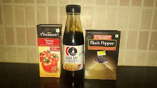 In a bowl, pour about 100ml of dark soy sauce with 1 tablespoon of black pepper powder, mix well.